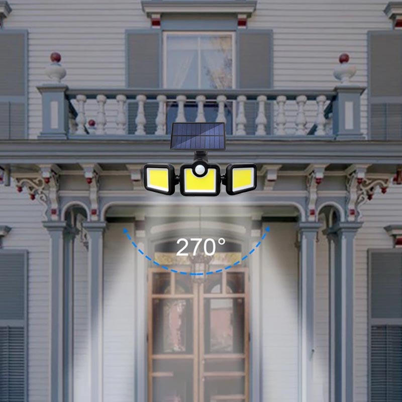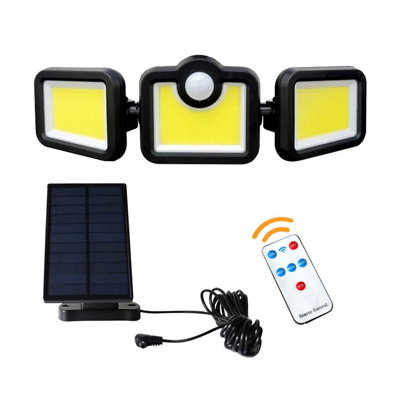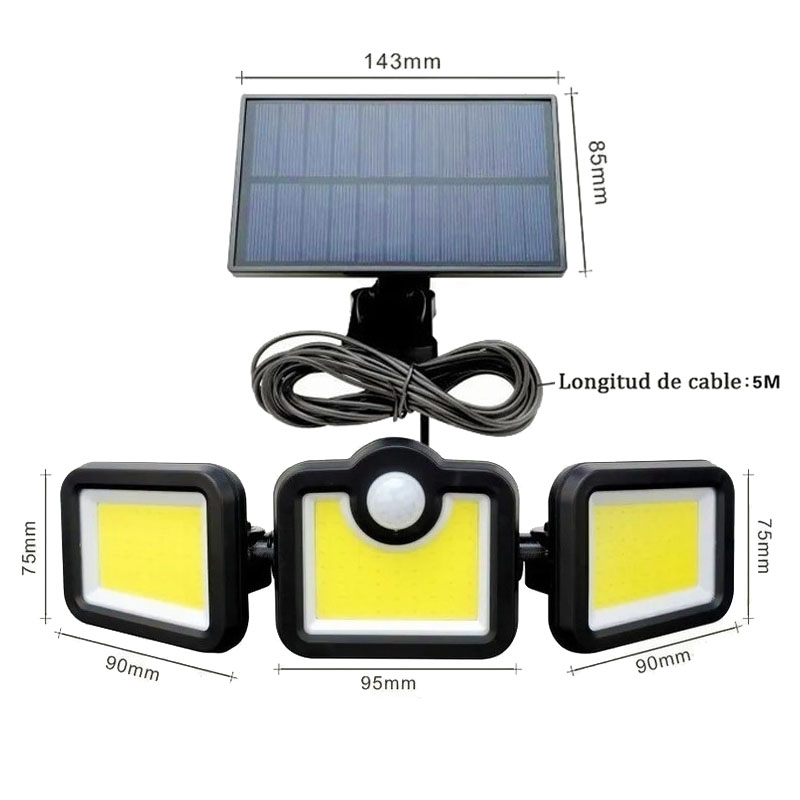 Foco Solar Triple con Sensor de Movimiento y Control Remoto COB
